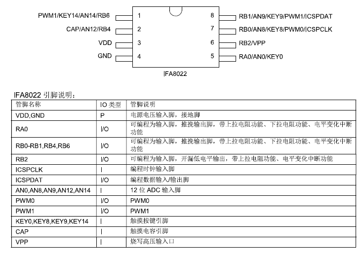 您當(dāng)前位置>: 首頁 > 產(chǎn)品中心 > 觸摸控制MCU > IFA8022觸摸型MCU
