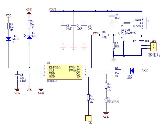 IFA8022還可以通過編程實現(xiàn)水面霧化(微孔霧化)補水儀功能,通過編程輸出100-120KHz的PWM正弦波,驅(qū)動微孔霧化片,是性價比最高的單片觸摸霧化驅(qū)動方案芯片。